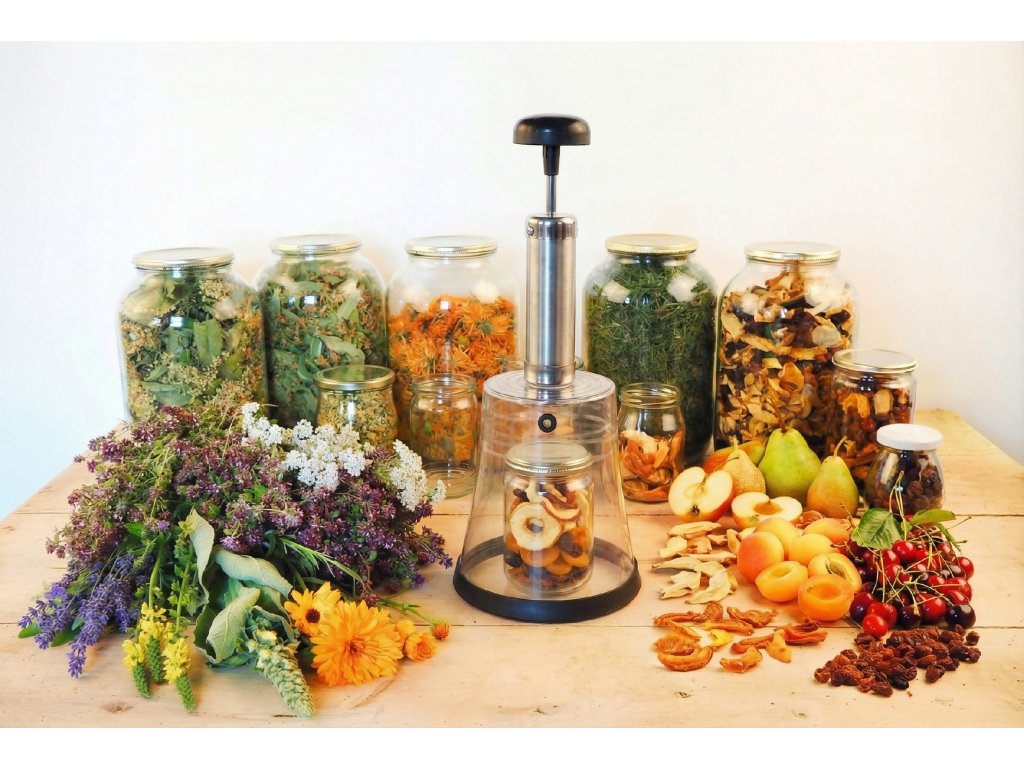 Vakuová zvon - uchování sušeného ovoce v 4L sklenici